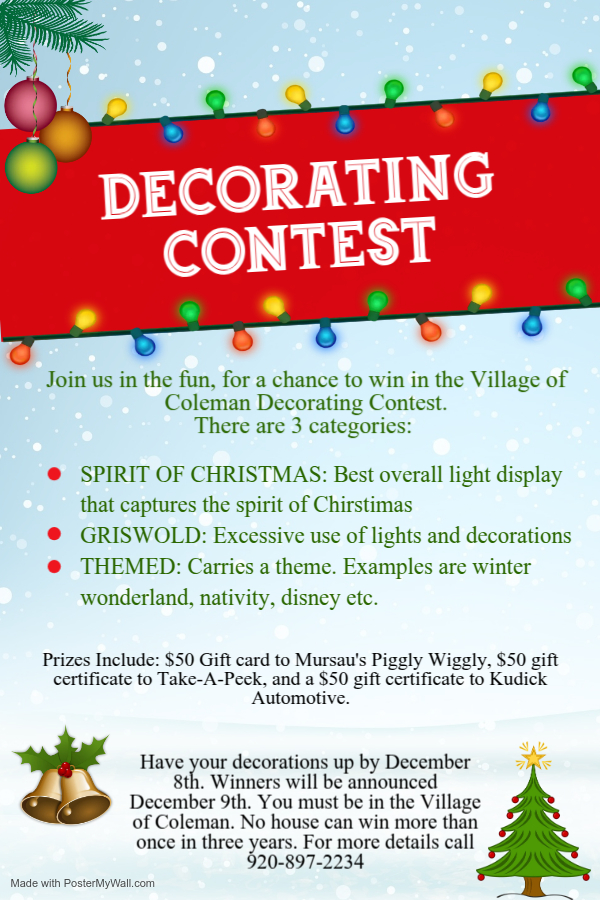 Coleman has industrial sites that are gold shovel ready! We have lots to build homes/duplexes/townhouses/apartments! We also have buildings available for purchase to start or grow your business! Contact the Municipal Building today for further information. Village President Jeffrey Gosa would be happy to speak with you at (920) 897-2234 or you can contact Dennis Gross Building Inspector at (920) 591-0076.